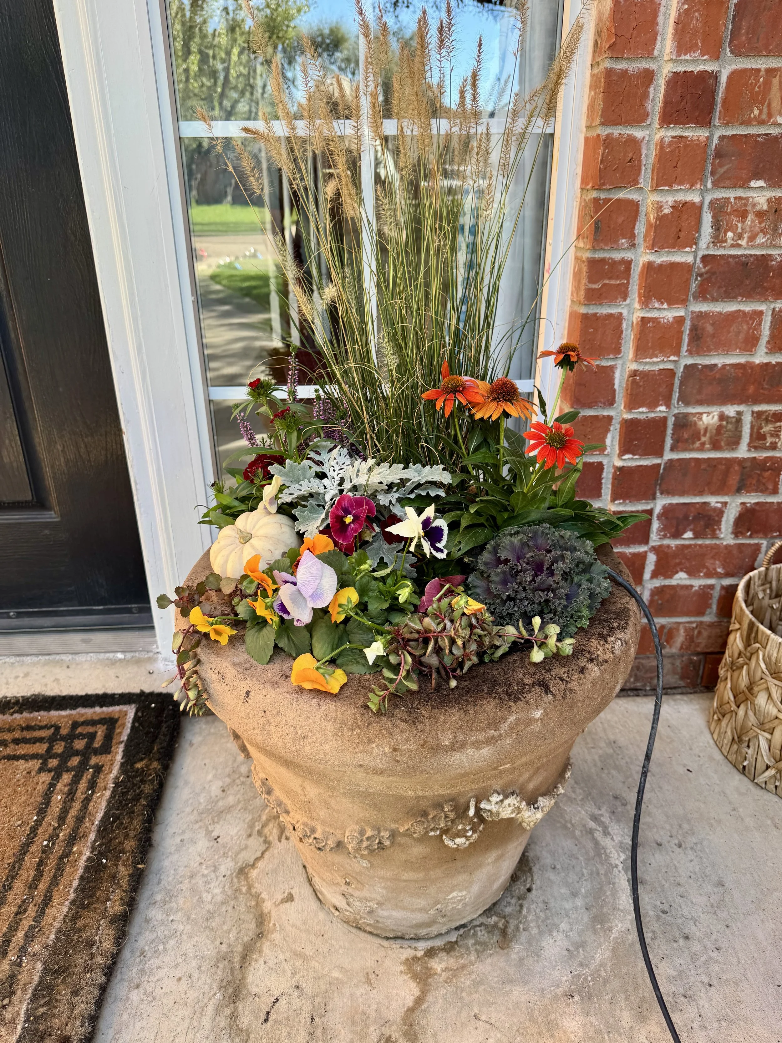 Our seasonal flower pots make it easy to refresh your porch, patio, or storefront throughout the year. Each pot is thoughtfully designed by our team to highlight the best blooms of the season — from vibrant pansies and kale in the fall, to colorful annuals in the summer, and festive greenery in the winter. No matter the season, your pots will always look full, fresh, and welcoming.